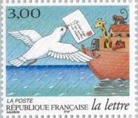 Série de 6 selos sobre a História da Escrita, com pomba e
